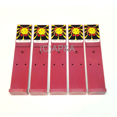 Set of 5 drop targets with decals for Williams Laser Cue pinball. No other parts or hardware included (plastic targets with decals only).