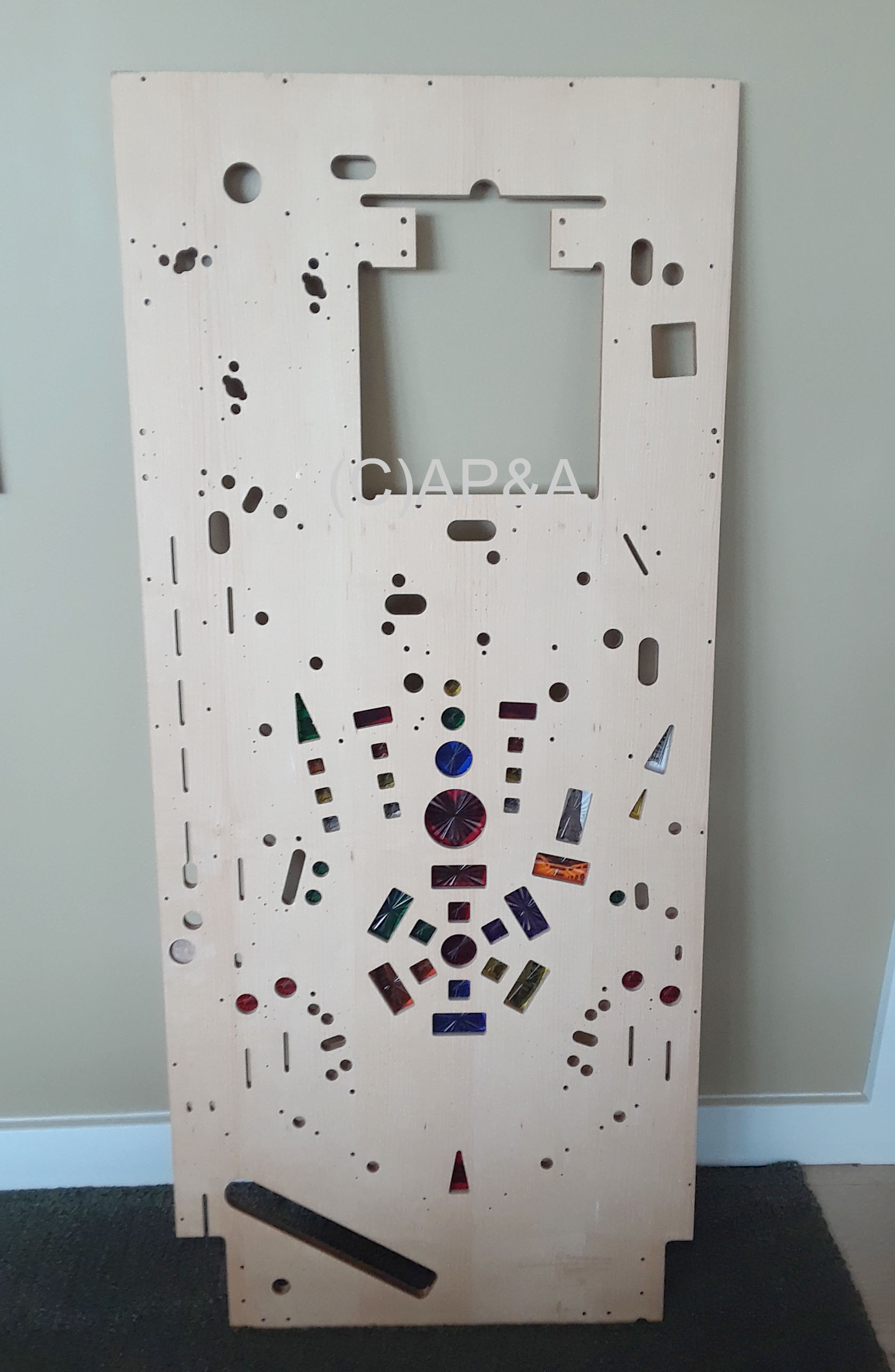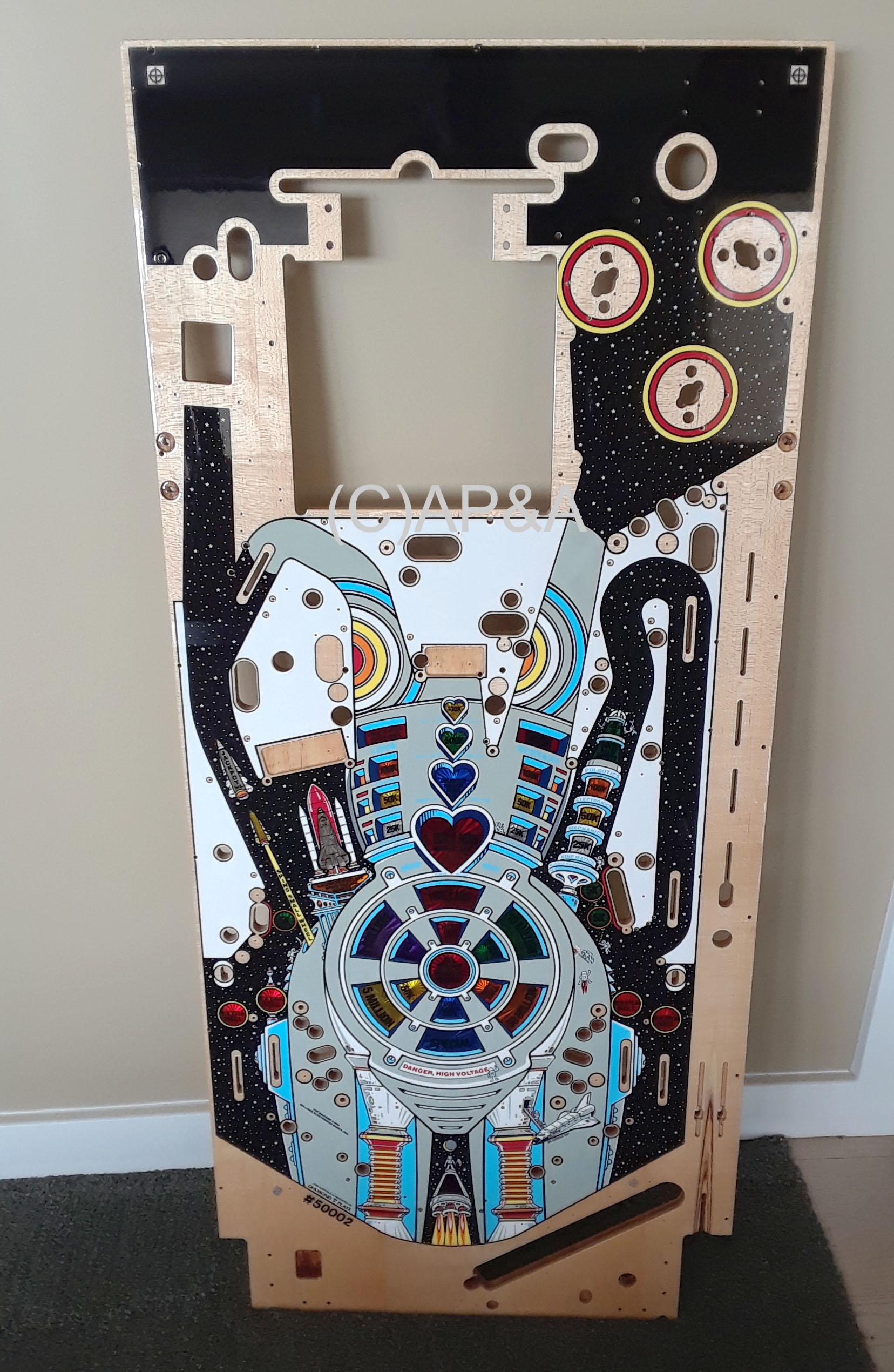 New reproduction silkscreen-printed playfield for Williams Machine: Bride of PinBot pinball. Produced by Perfect Playfields in Germany.