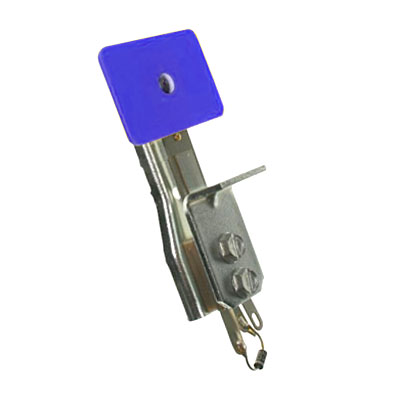 Blue stationary standup target switch assembly, rectangular. Target face measures 1-1/2 x 1 inches. Includes diode on solder lugs and mounting bracket.