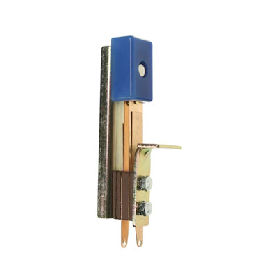 Blue opaque narrow oblong 3D stationary target switch with diode and mounting bracket.