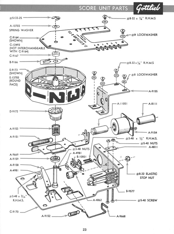 Brass wiper contact for score reels in many Gottlieb electro-mechanical (EM) games.