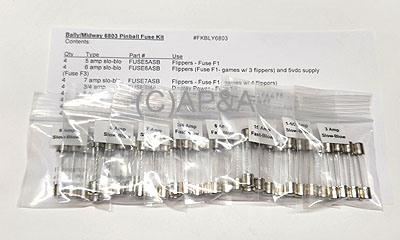 - Kit May Not Include: Every possible fuse that your game takes. Some games had different designs which may have required additional or different fuses, so kits we sell may not include all possible fuses for all possible designs/variations of all games. Please review the kit contents via the link above before ordering, to make sure you are ordering what you need.