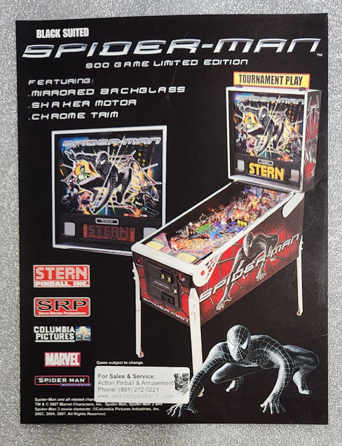 Spider-Man Black Edition (Stern) Sales Flyer - Original (WITH DEALER STICKER):