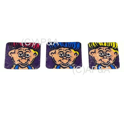 Set of 3 decals for the 3-bank drop targets on Stern Roller Coaster Tycoon pinball. These decals mount on the targets in the 3-bank drop target assembly in the top/center of playfield, and install from left to right as pictured.