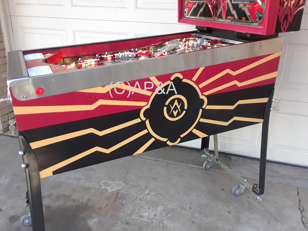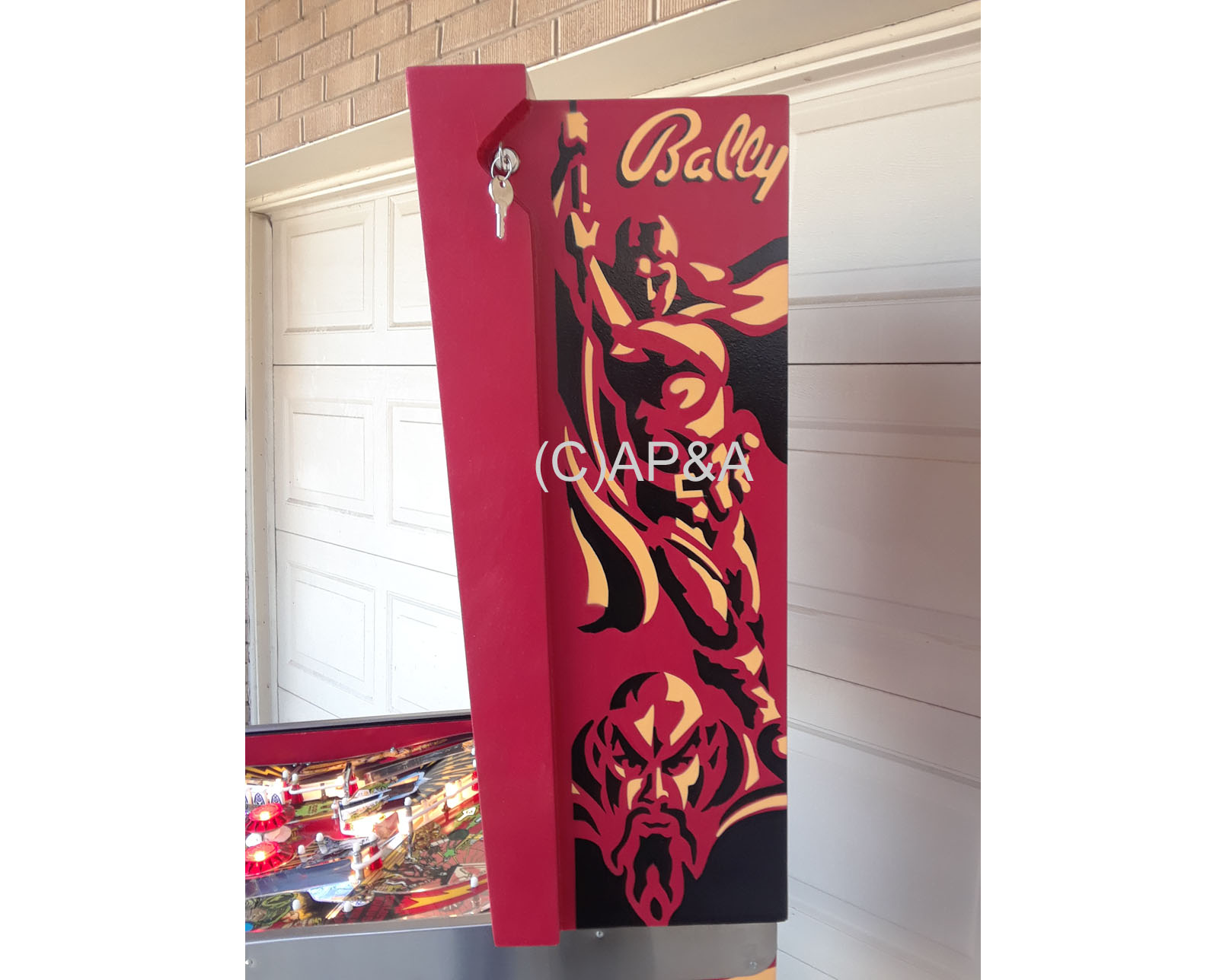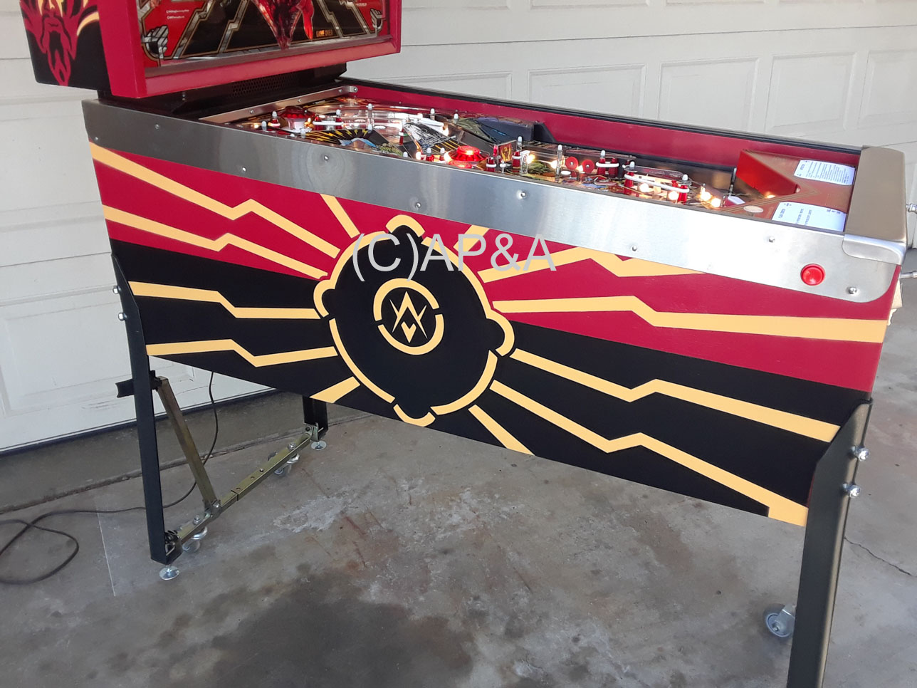| Cabinet left side. Full professional cabinet repaint. New stainless steel side rails and retaining twist nails. New flipper buttons.