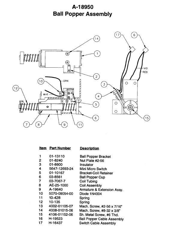 Metal bracket for ball vertical up-kicker on Bally Shadow pinball.