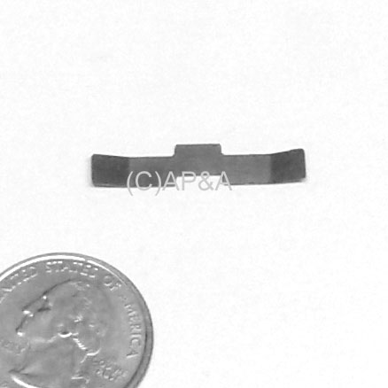 Small thin metal springsteel liner that mounts on back of nylon crank arm # A-19258 and acts as a tensioner/spring for the arm.