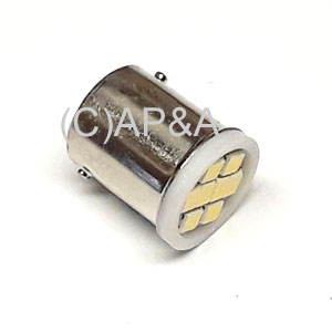 Replaces old # 113-5045-08. Cool white LED lamp, 5-volt. Large BA9 bayonet base (same size as incandescent #89 lamp). 8 surface-mount (SMD) LED elements.