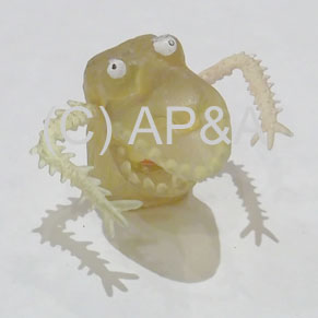 Yellow rubber boogie man character for Bally Elvira and the Party Monsters pinball, and installed on slingshot bumpers on Bally Scared Stiff. Replaces Bally part # 23-6639.