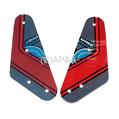 2-piece set of lower slingshot bumper plastics for left and right sides on Williams Terminator 2 pinball. New reproduction parts.
