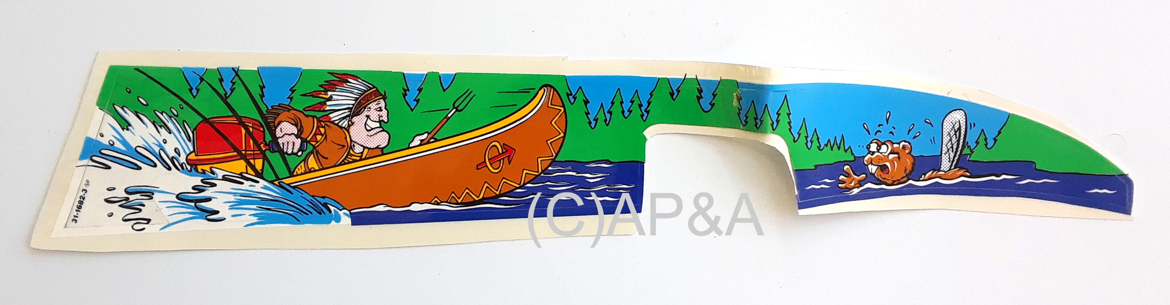 Factory-original NOS screen-printed artwork decal for fish rod and reel (catapult) cover (assembly # A-15405) on Williams Fish Tales pinball. 1 of 3 decals for clear plastic cover.