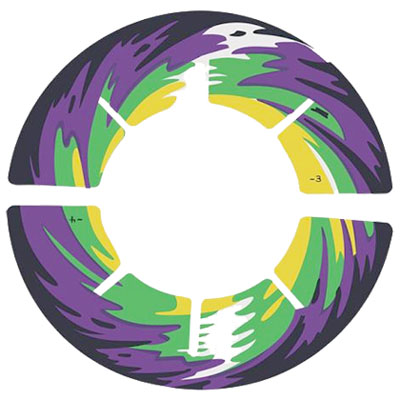 2-piece set of self-adhesive artwork decals for molded plastic bowl/funnel ramp on Bally Creature From the Black Lagoon pinball. Peel-and-stick application.