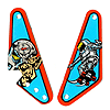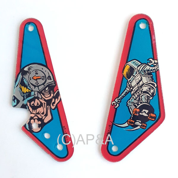 Factory-original set of left and right slingshot bumper plastics for Bally Judge Dredd pinball. Includes # 31-1788-24 (left) and # 31-1788-22 (right).