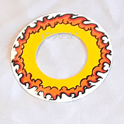 Artwork decal for vertical Fireball magnet coil on upper left ramp. Applies to vertical face of coil assembly. Use with magnet perimiter decal (sold separately). Measures approx. 3-1/2 inches diameter. Peel-and-stick installation.