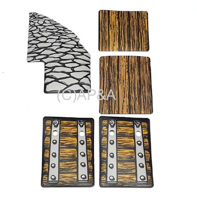 5-piece factory-original NOS (new old stock) decal set for playfield on Williams Medieval Madness pinball. Includes 2 troll lid decals, front drawbridge decal, back drawbridge decal, and castle floor decal.