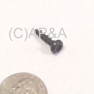 Security Torx wood-thread (SMS) screw. #8 diameter, 5/8-inch overall length. Black finish. Secures cabinet trim/hardware parts on some games, and plastic backbox topper covers on some Bally/Williams games.