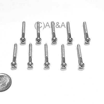Set of 10 #5 diameter screws, 1-inch length. Phillips pan head, steel, zinc plated. 2/3 length is threaded (1/3 smooth).