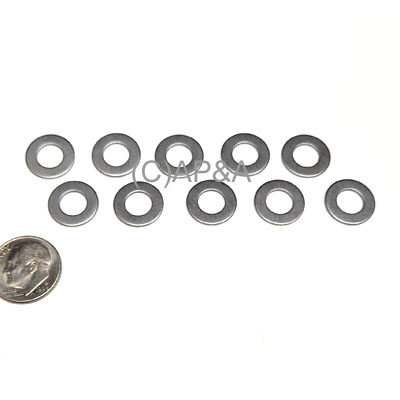 Set of 10 small flat washers, each measuring 1/2-inch (13mm) outer-diameter, 17/64-inch (7.1mm) inner-diameter, 0.032 inch (0.81mm) thick. For some late-model Bally and Williams games (see game listing below).