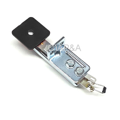 Black stationary standup target switch assembly, square. Target face measures 1 inch. Includes diode on solder lugs and stabilizing mounting bracket.