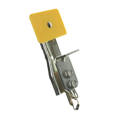 Yellow stationary standup target switch assembly, rectangular. Target face measures 1-1/2 x 1 inches. Includes diode on solder lugs and mounting bracket.