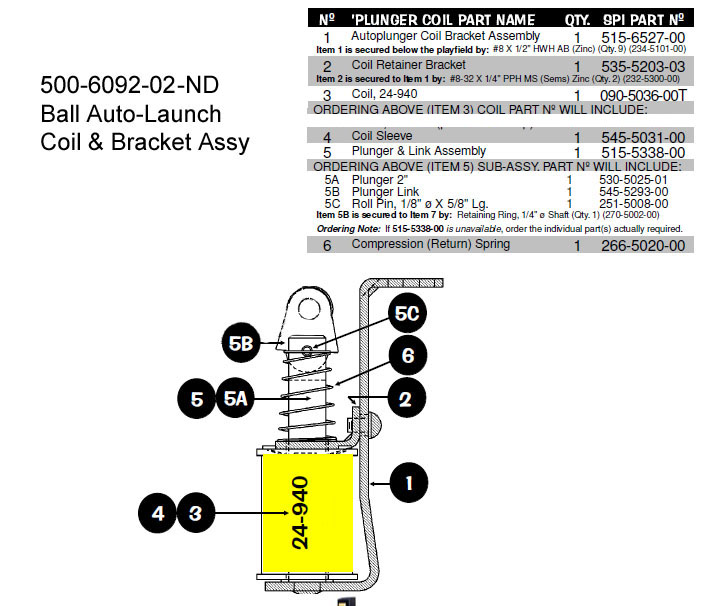 Coil and bracket assembly for ball auto-launch mechanism used in some late-model Stern Pinball games. Includes the following parts: