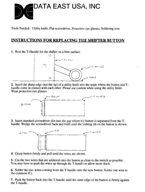 Star Wars (Data East) T-Handle Shifter Fire Button: