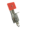 Red stationary standup target switch, rectangular. Target face measures 1-1/2 x 1 inches. Includes diode on solder lugs.
