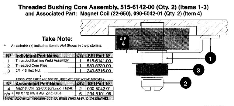 Magnet core assembly for some Sega and Stern Pinball games (see game listing below).