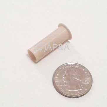 Plastic coil sleeve, 1-1/8 inch (28mm) overall length, 5/16 outer diameter.