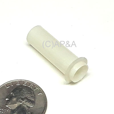 Small plastic coil sleeve with flange. 1-3/16 inches (30mm) overall length, 5/16 inch outer diameter.