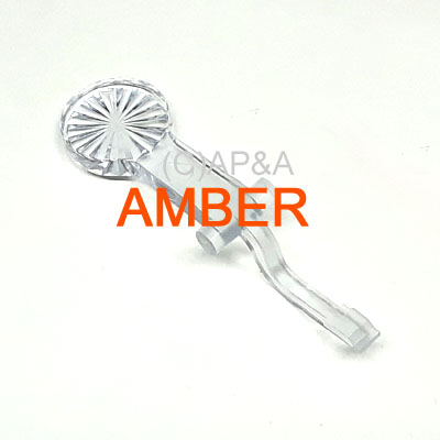 Amber round transparent target insert for modular standup target assemblies on some Sega and late-model Stern Pinball games. Target face measures 1 inch round.