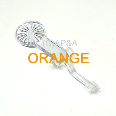 Orange round transparent target insert for modular standup target assemblies on some Sega and late-model Stern Pinball games. Target face measures 1 inch round.