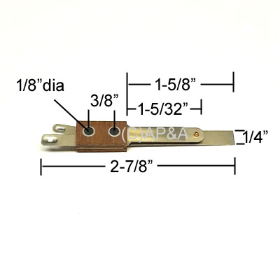 Universal leaf switch assembly. Multiple uses including rollover switches, start buttons, fire buttons and joysticks in early video games, and more. Long blade measures 1-5/8-inches. Short blade measures 1-5/32-inches. Blades are 1/4-inch wide. Mounting holes are 1/8-inch diameter and 3/8-inch apart, center-to-center. 2 solder terminals. Overall length is 2-7/8-inches.