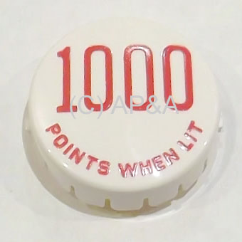 Pop bumper cap used on early and late-model Gottlieb and Gottlieb / Premier games. This cap features red printing on white plastic cap, 1000 POINTS WHEN LIT.