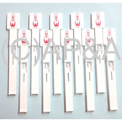 10-piece set of new white plastic drop targets with red bowling pin decals. Used on Gottlieb King Pin, Pin-Up, and Ten-Pin pinball games.
