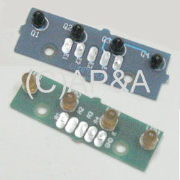 Replacement set of 2 opto PC boards (emitter and receiver) with four opto elements per board. Used to detect ball hits on the bookcase. Mounts under bookcase base.