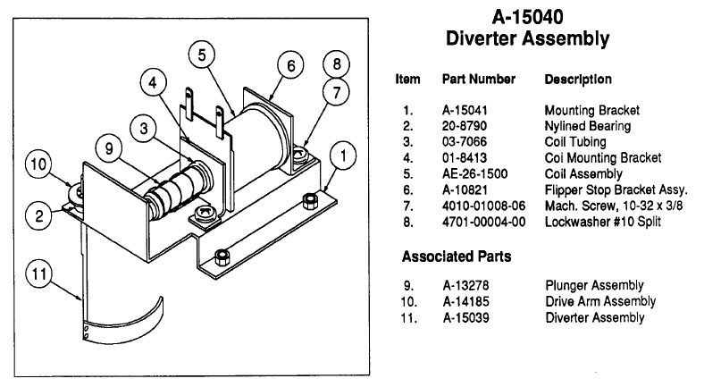 Complete ball diverter mechanism for ramp on Bally Addams Family and Addams Family Gold pinballs.