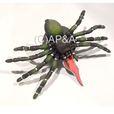 Spider and indicator assembly for Spin The Spider motorized backbox feature on Bally Scared Stiff pinball. Assembly includes spider # 03-9563 and plastic indicator (pointer) # 31-2600 painted fluorescent orange. Factory-original NOS assembly in new/unused condition.
