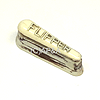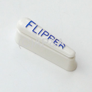 Small 2-inch plastic white flipper cap with raised blue FLIPPER horizontal lettering.