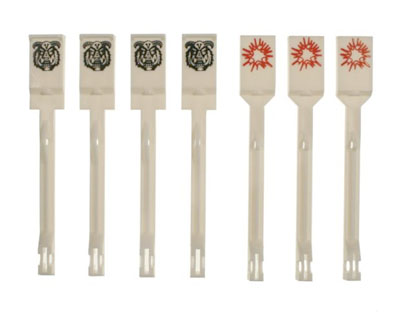 7-piece set of new white plastic drop targets with artwork decals for all of the drop targets on Bally Paragon.