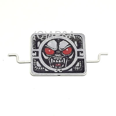 Aftermarket replacement spinner target. Black painted target with artwork decals on the front and back sides (original spinner target had silkscreened-printed artwork).