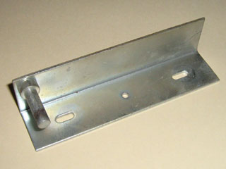 Used backbox insert panel top hinge assembly. Acts as a support/hinge bracket for holding top of backbox insert panel in early Williams electronic solid-state (SS) pinball games. Used part in good condition.