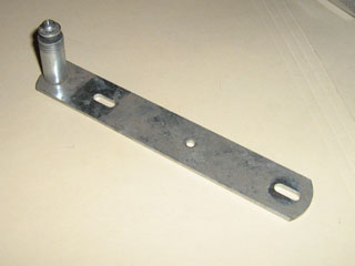 Used backbox insert panel lower hinge assembly. Acts as a support bracket for holding backbox insert panel in early Williams electronic solid-state (SS) pinball games. Used part in good condition.