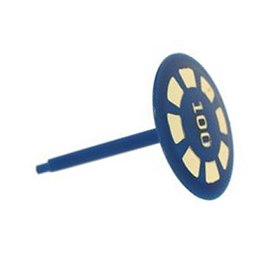 Mushroom bumper target actuator and stem/plunger for some older Bally and Bally/Midway pinball games. Blue plastic with gold 100 and surrounding design. Measures 1-3/8-inch diameter. Sold as shown- no hardware included.