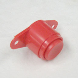 Red flipper pushbutton and housing for Bally & Stern late electro-mechanical (EM) and early electronic solid-state (SS) games, mid 1970s to mid 1980s. Sold as a set- button and housing (2pcs).