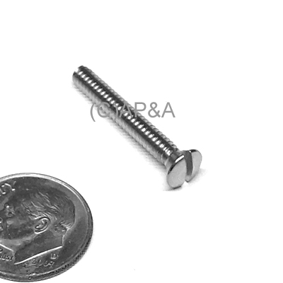 Undercut oval head slotted screw. #6-32 thread pitch. 1 inch length. For several types of small and large flipper bats on Gottlieb games where the flipper bat mounts to the shoe/shaft with this screw, from the top, down into the flipper shaft underneath.
