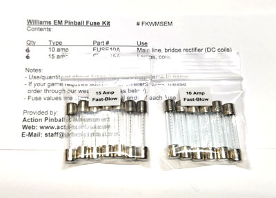 Fuse Kit - Williams Electro-Mechanical Games (through 1977) (SEE NOTES):