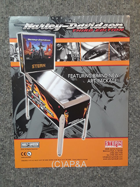 Factory-original color sales/promotional flyer for Stern Harley Davidson pinball (3rd edition). 1-sided.