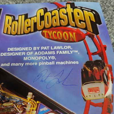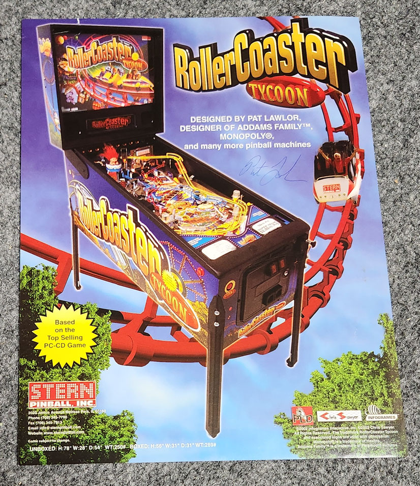 Roller Coaster Tycoon (Stern) Sales Flyer - Original - Pat Lawlor Signed (SEE NOTE):