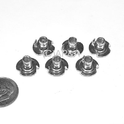 Set of 6 T-nuts. Accepts #6 diameter screw, 32 thread pitch. Steel, zinc-plated.